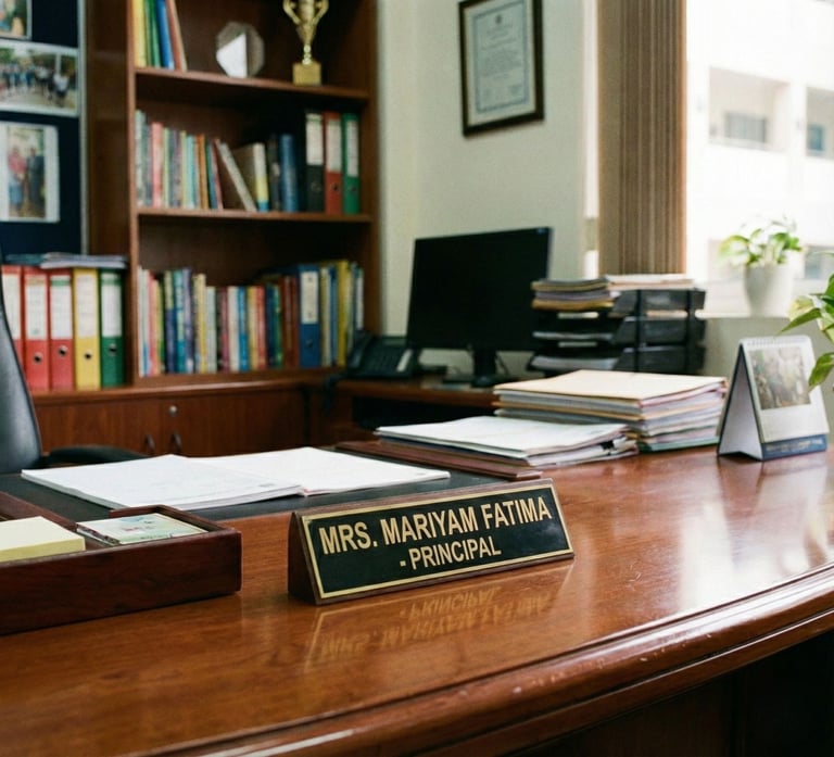 Mrs. Mariyam Fatima leads the academic and administrative functions of the school with dedication and care. She works closely with teachers, students, and parents to ensure a positive learning environment where every child is encouraged to achieve their best and grow into a confident and responsible individual.